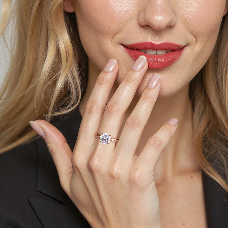 "Plein de Tendresse" Bague de Fiançailles Taille Ronde 2.5 carats à Pierres Latérales