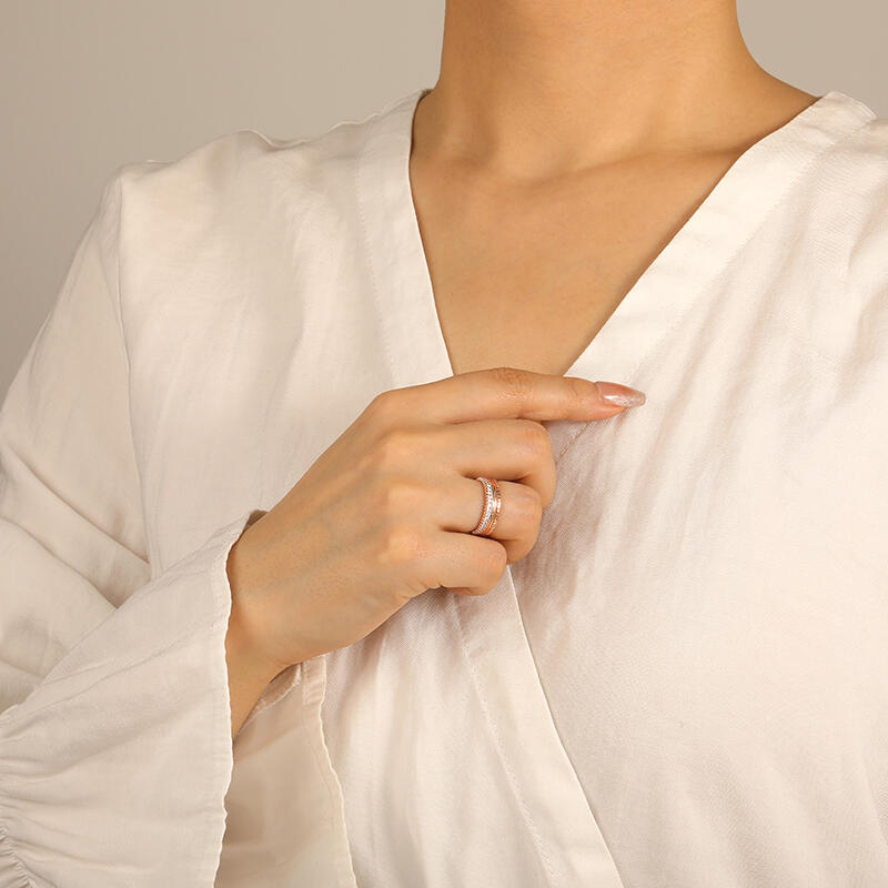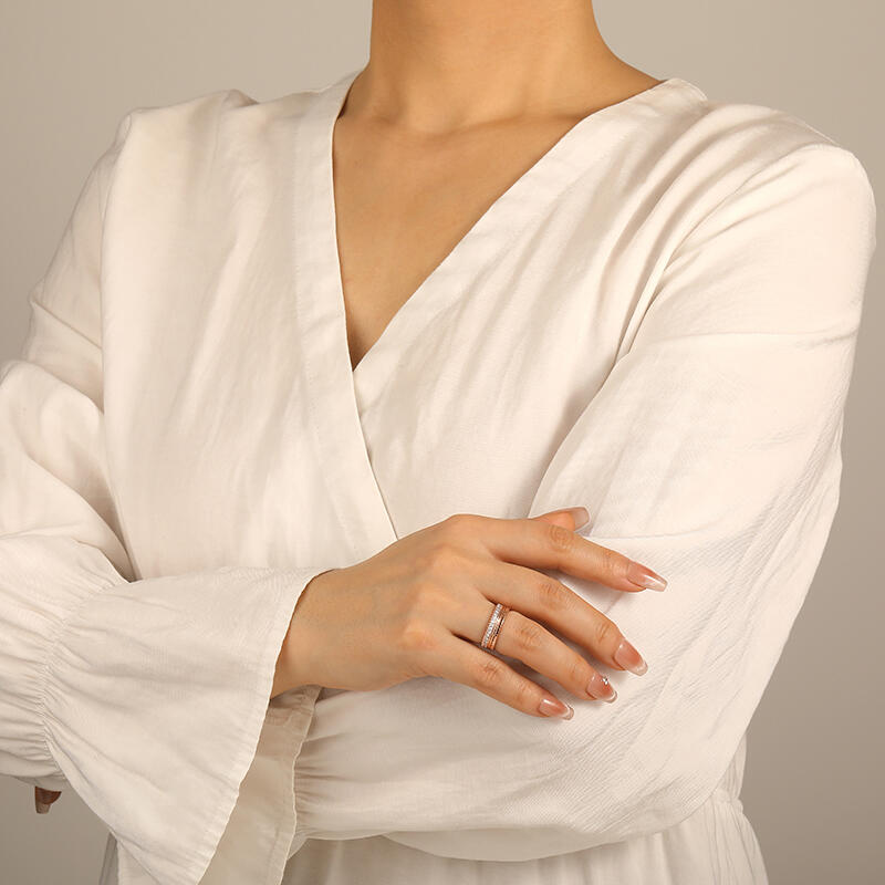 Alliance de mariage tendance avec des gravures géométriques complexes sur un large bandeau brossé. Ornée d'une rangée de pierres taille princesse et de bords millegrain, cette pièce épurée incarne l'aboutissement de l'esthétique moderne en joaillerie, parfaitement adaptée à un usage quotidien.