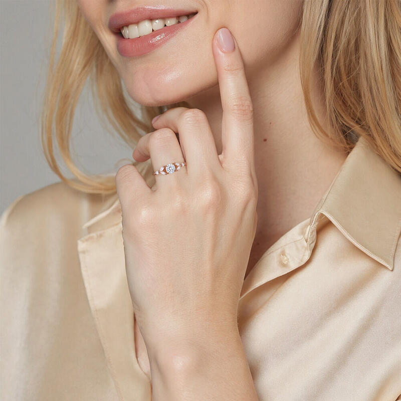 "Jardin de Paix" Bague de fiançailles 0,8 ct taille Ronde avec pierres latérales