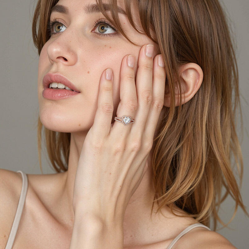Un bijou exceptionnel de SHE·SAID·YES met en valeur une pierre précieuse en forme de cœur étincelante au centre. Un halo éblouissant et une monture cathédrale pavée de manière unique ajoutent éclat et élégance, créant un look intemporel pour une femme élégante qui pourra le transmettre en héritage.