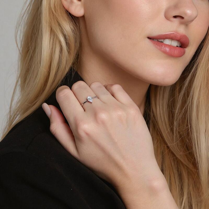 La monture confère à une pierre taille poire un look classique tout en permettant à davantage de lumière de pénétrer la pierre, rehaussant ainsi son éclat. Offrez cette bague à votre bien-aimée pour lui promettre de rester à ses côtés pour l'éternité.