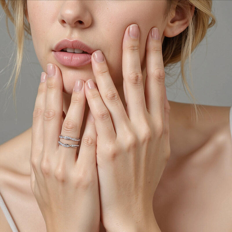 Ce superbe ensemble de mariée incarne l'essence même du romantisme et de l'artisanat. La bague de fiançailles en forme de navette est ornée d'un halo caché, offrant une touche de brillance, tandis que les griffes serties et la monture témoignent d'un savoir-faire méticuleux. L'anneau d'accompagnement, entrelacement gracieux de ruban de pierres précieuses et de métal poli, ajoute une note de fantaisie et de sophistication, en faisant un rêve pour la mariée moderne.
