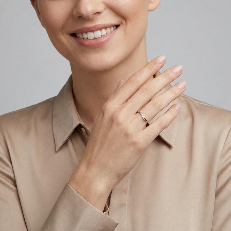 Délicate et rayonnante, cette alliance arbore un design impeccablement poli qui rehausse son éclat. En son cœur, un ruban scintillant de pierres précieuses s'enroule avec grâce, leurs facettes captant la lumière à chaque mouvement. La fusion harmonieuse du métal poli et des pierres étincelantes crée un effet à la fois raffiné et captivant—parfait pour une touche de glamour discret.