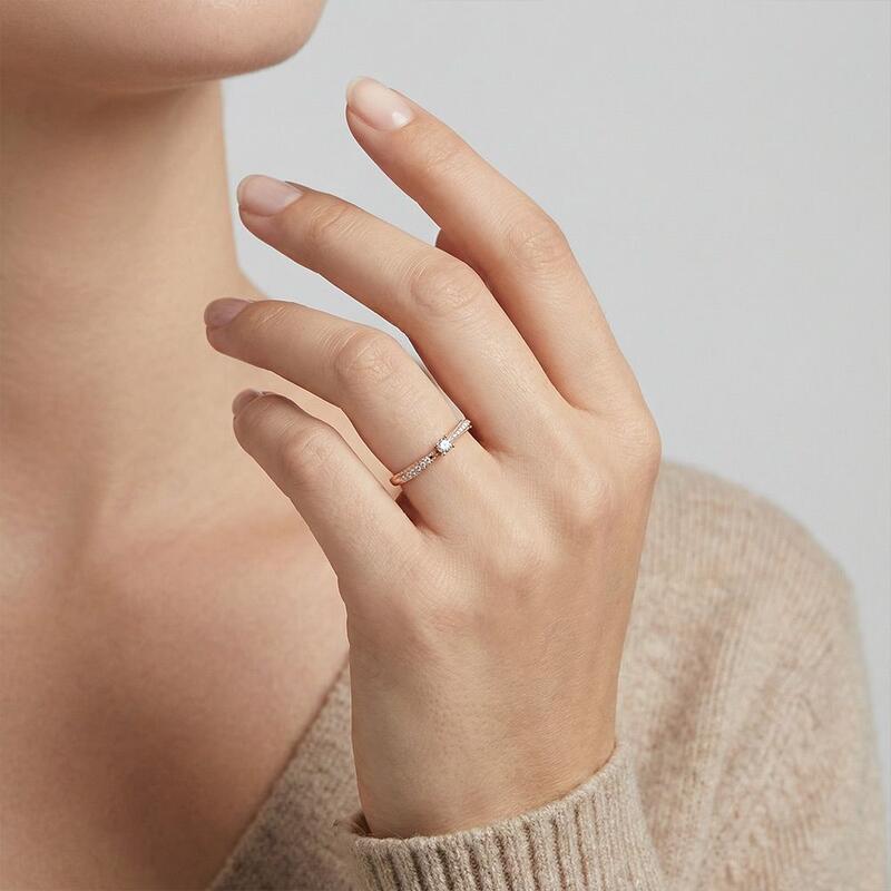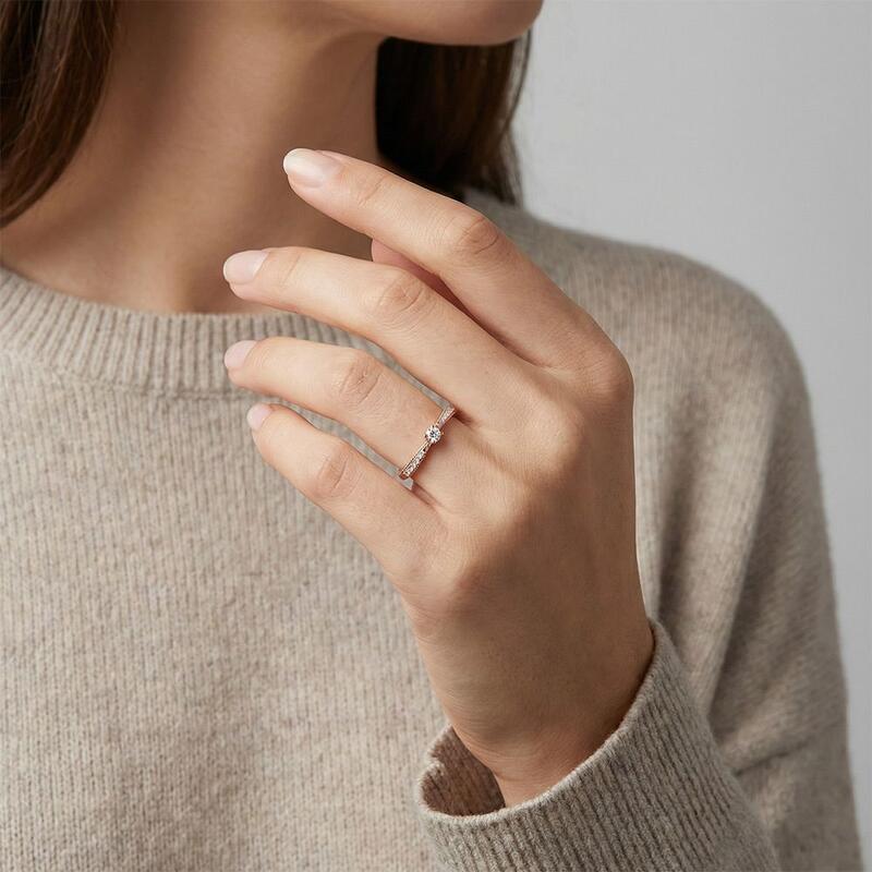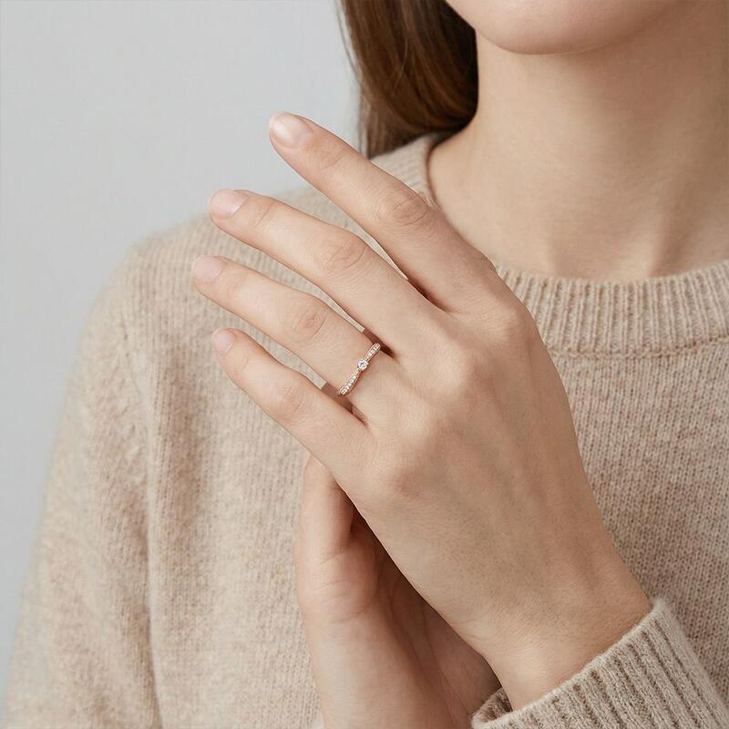 Gracieuse et lumineuse, cette alliance présente un gemme rond dans un délicat sertissage à griffes, enveloppé par une bande au design fluide ornée d'accents scintillants et de délicats détails milgrain. Le jeu entre lumière et texture crée une danse envoûtante d'élégance—parfaite pour la mariée qui chérit un romantisme intemporel avec un soupçon de charme vintage.