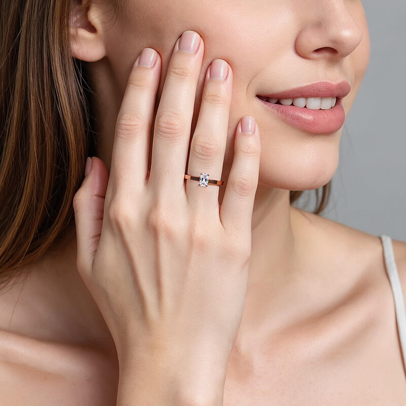 "Histoire d'amour" 0.8ct solitaire de fiançailles taille coussin allongé