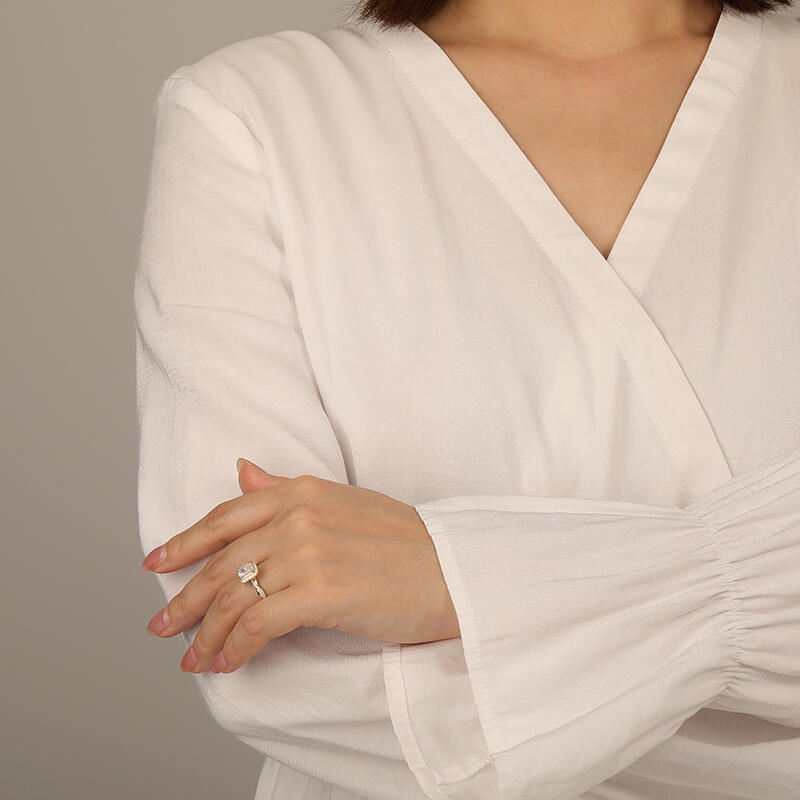 "Notre Instant Précieux" Bague de Fiançailles Taille Émeraude à Halo