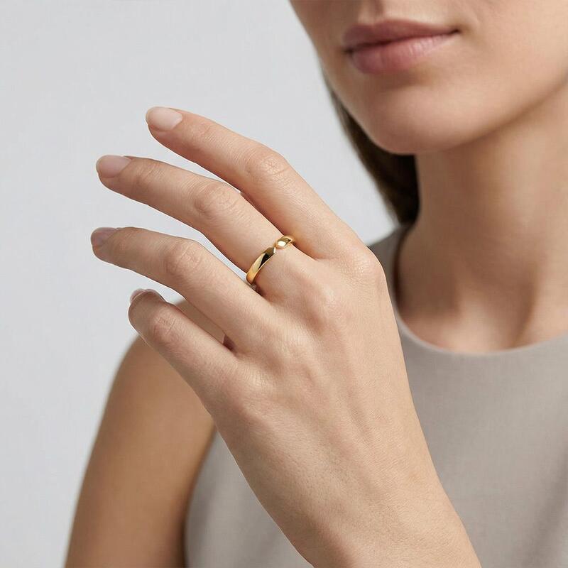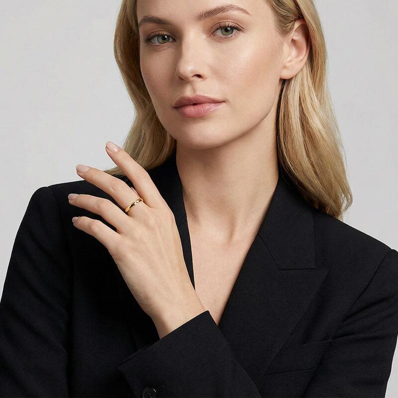 Délicate mais bien définie, cette bague présente le même motif de flèche tracé dans un brillant poli miroir, sa surface lumineuse dansant avec la lumière. Les contours raffinés adoucissent légèrement la géométrie, permettant au design de s'enrouler avec grâce autour du doigt—élégant et captivant dans sa simplicité.