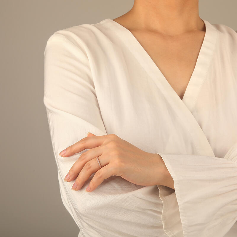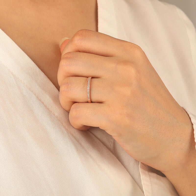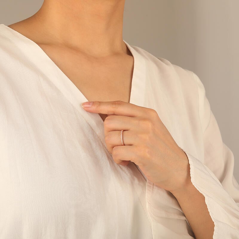 Cette alliance au design classique rayonne d'éclat. Les pierres rondes serties avec précision dans un serti cannelé poli révèlent toute la brillance des gemmes, tandis que les détails millegrain apportent une touche d'élégance sophistiquée.