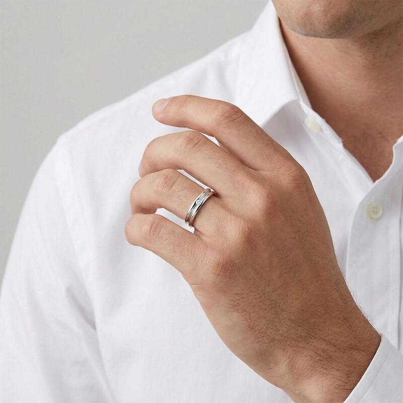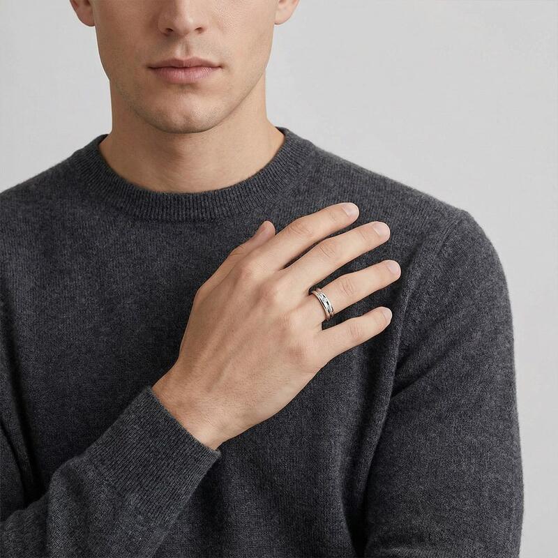 Discrète et épurée, cette bague double bande arbore un discret gemme rond, ajoutant une touche de raffinement. Son design net et imbriqué allie force et sophistication, ses détails subtils évoquant une dévotion silencieuse. Sans prétention mais réfléchie, c'est un symbole moderne d'unité—minimaliste, durable et naturellement élégant.