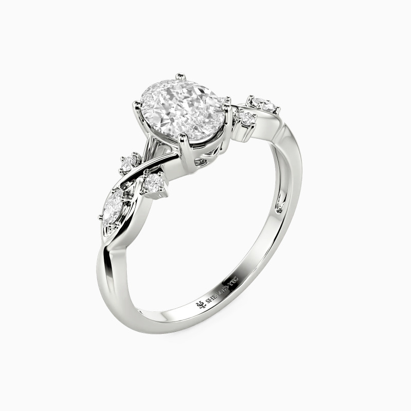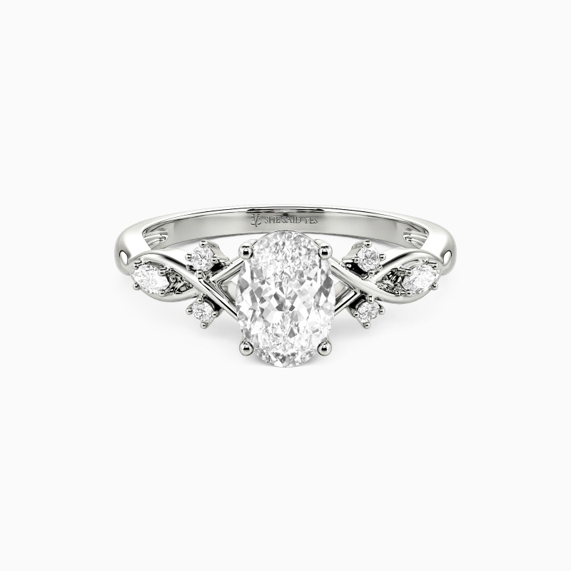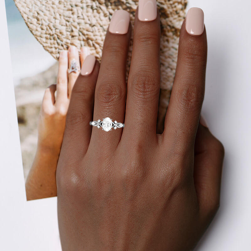 "Notre Éternité Inécrite" Bague de fiançailles ovale avec pierres latérales