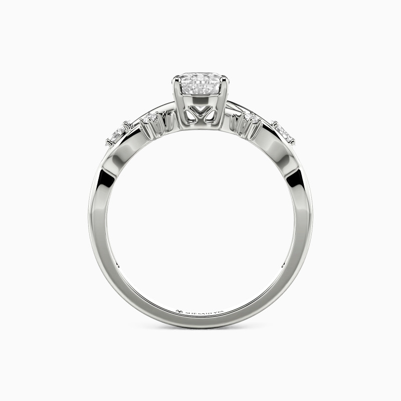 Une pierre centrale ovale gracieuse vole la vedette, encadrée par des pierres latérales marquise et rondes délicates qui suivent le contour comme une poussière d'étoiles. Le corps torsadé en infini ajoute un soupçon de symbolisme - ses arcs entrelacés reflétant un amour sans fin. Discret mais plein de sens, cette bague allie élégance et intention profonde.