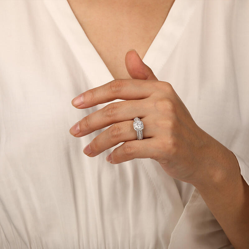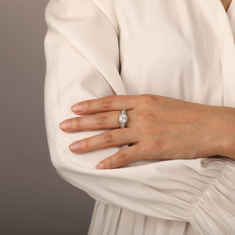 "Être avec toi" Taille coussin Bague de fiançailles halo
