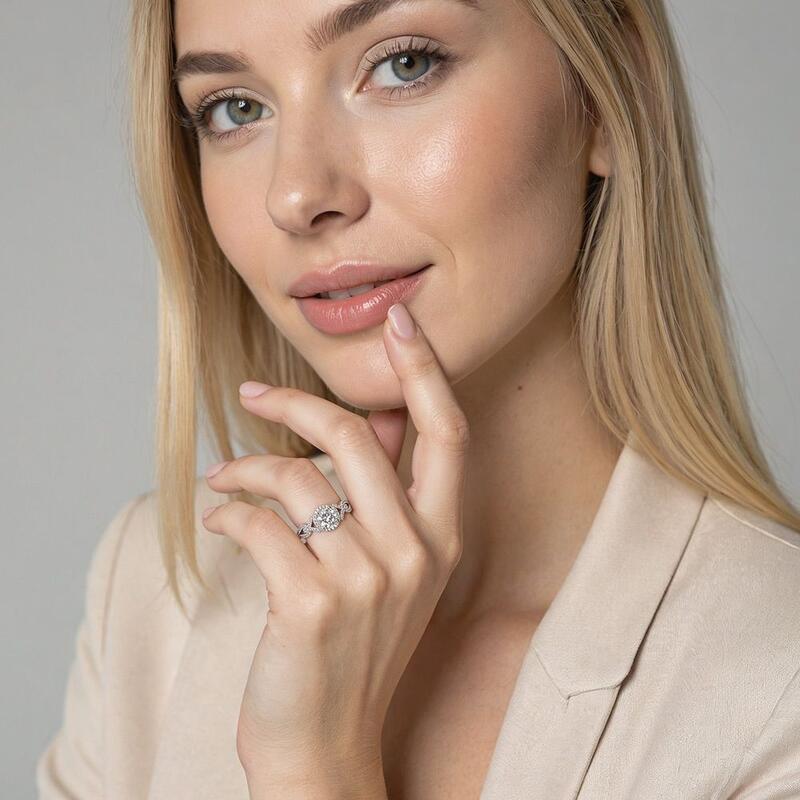 "L'amour t'entoure toujours" Taille ronde halo Bague de fiançailles