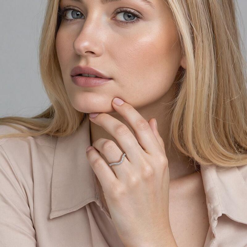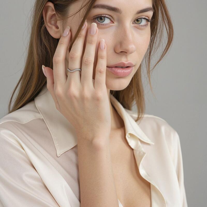 Alliance classique au charme délicat. Ce modèle scintillant arbore un sertissage pavé de pierres rondes avec une courbure gracieuse en son centre. D'une polyvalence absolue, il s'accorde à toutes les tenues tout en projetant des reflets envoûtants sous chaque angle.