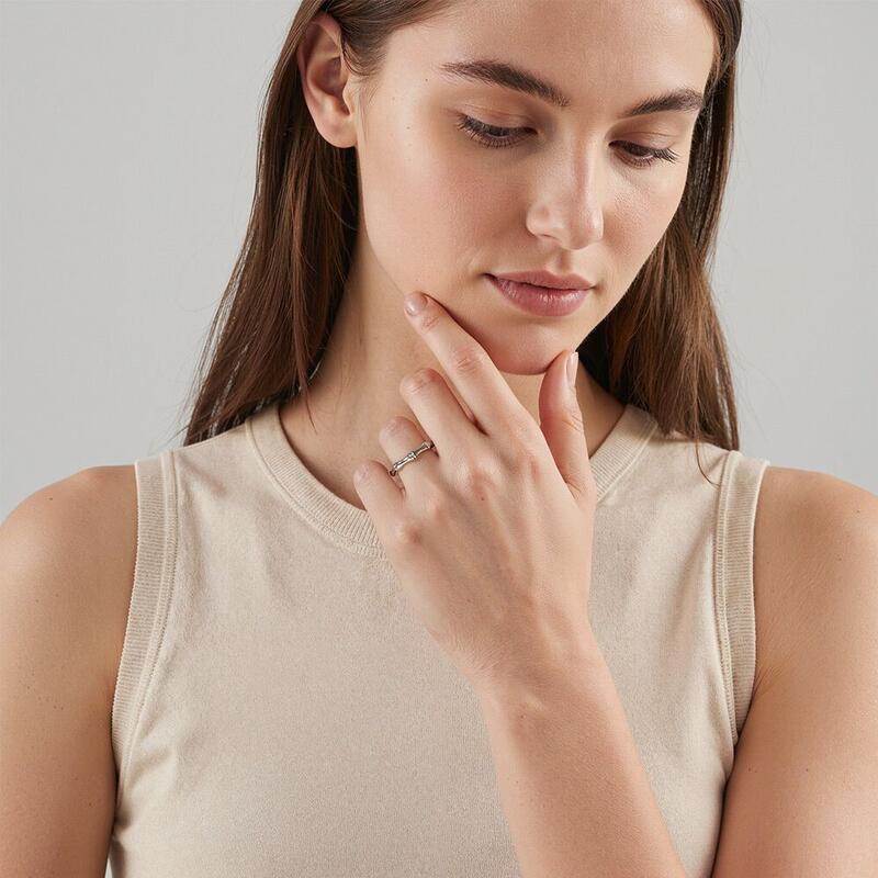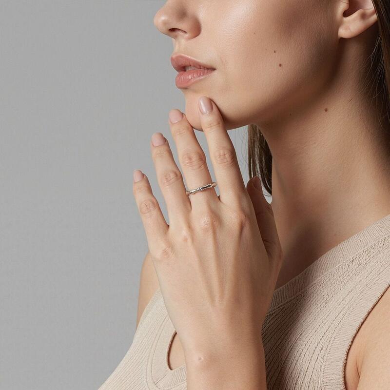 Alliance zen contemporaine : Des courbes épurées évoquant les nœuds de bambou, ciselées dans un métal miroir. Ce design épuré aux proportions calligraphiques incarne l'harmonie entre force et souplesse.