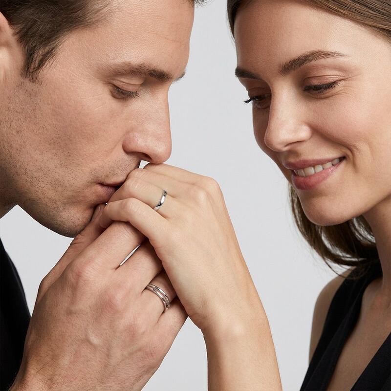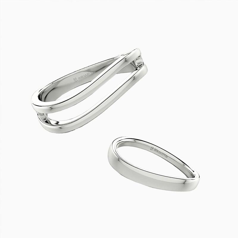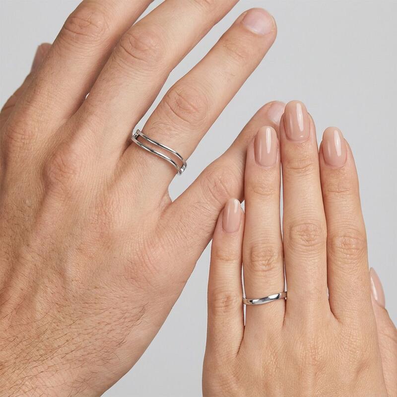 Ces alliances dansent en synchronie inspirée par les vagues, mêlant fluidité et distinction subtile. Le modèle féminin ondule en lignes douces et roulantes évoquant la marée. Son pendant masculin reflète cette forme rythmée, rehaussé par un détail ajouré élégant en son centre – liant leurs designs au flux ininterrompu de leur affection partagée.