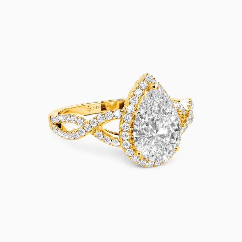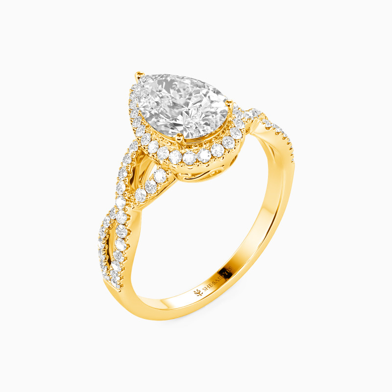 "Tu es unique" Bague de fiançailles 2 ct taille poire avec halo